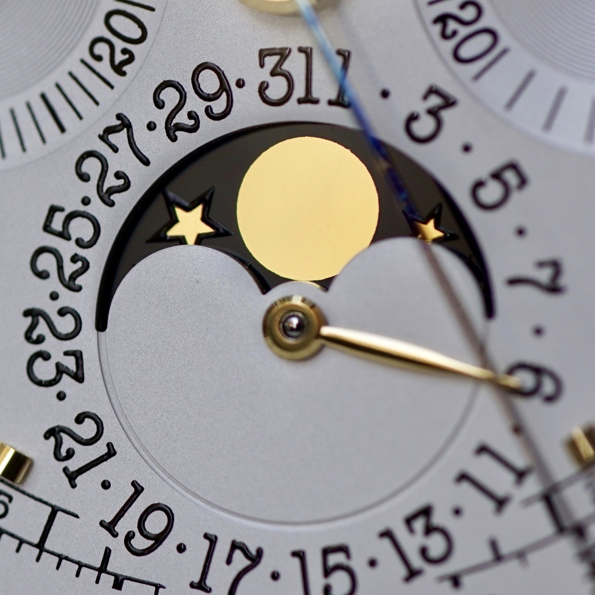 Hour, Minute, Seconds, chronograph day, date, leap-year moonphase